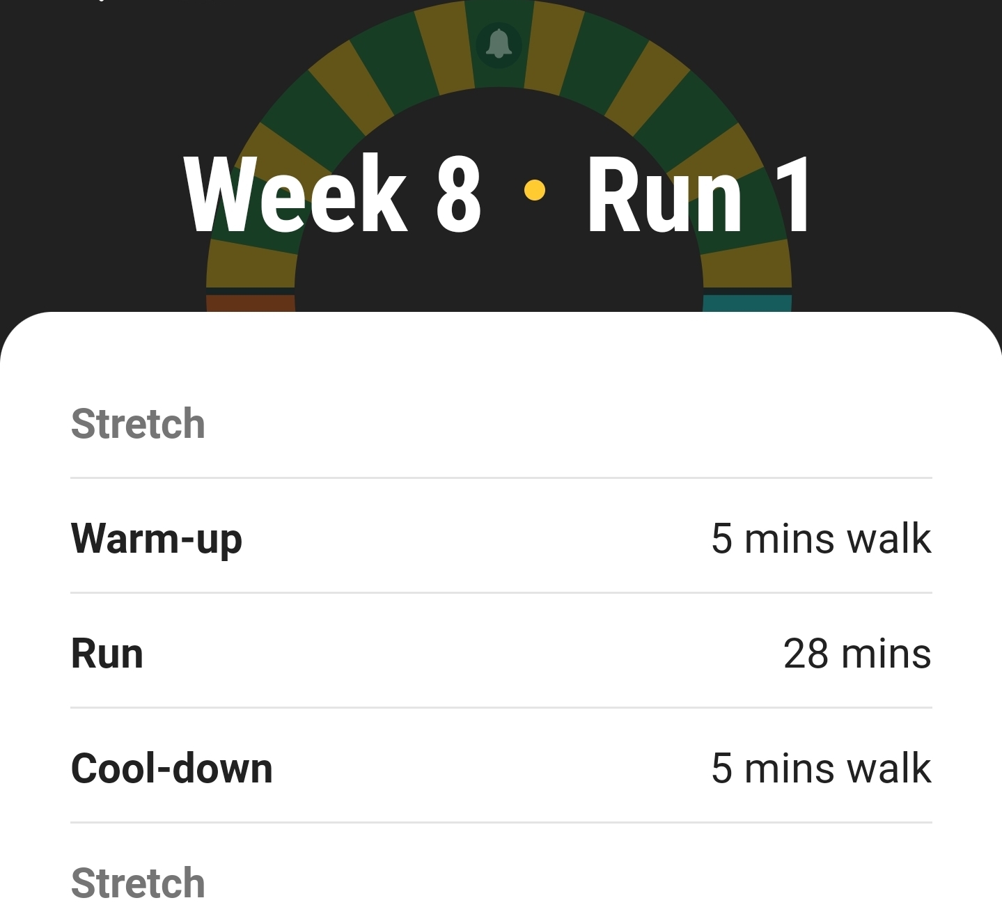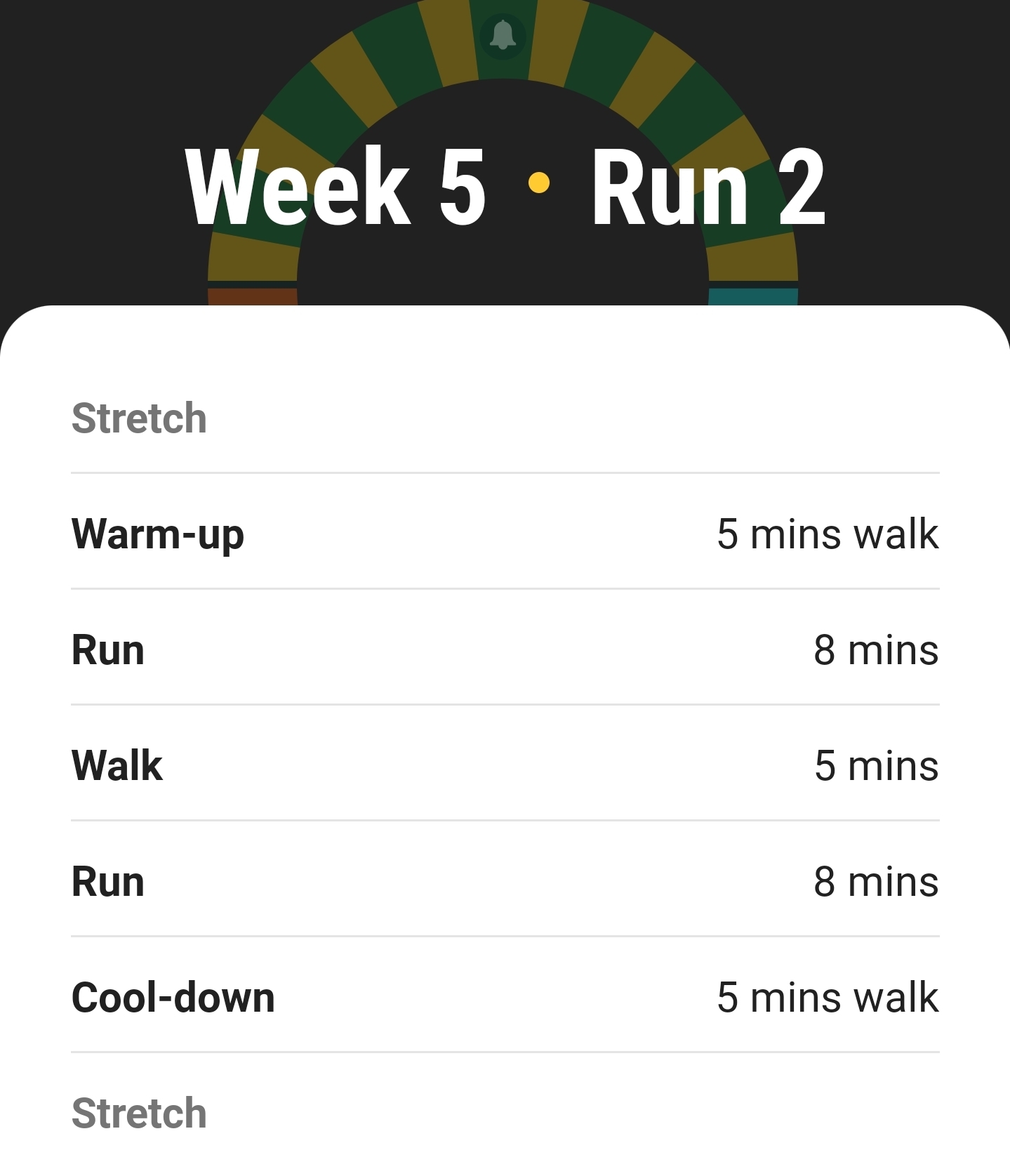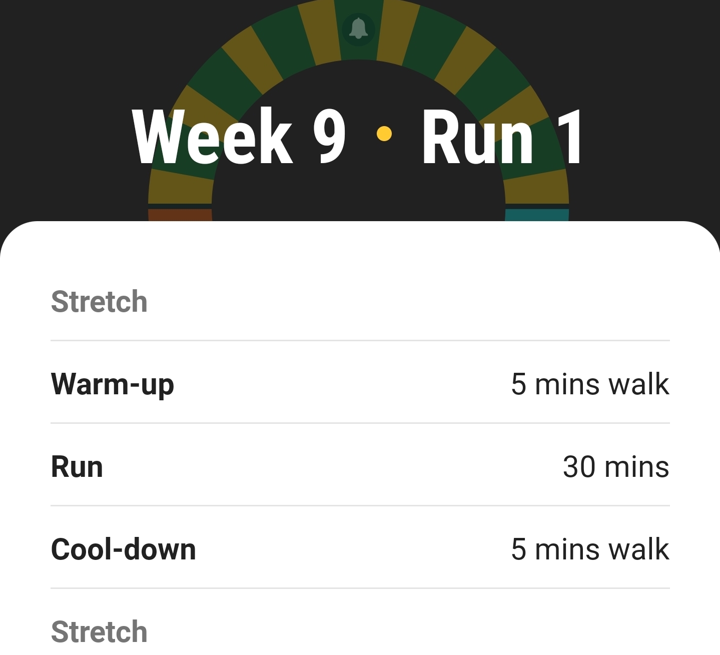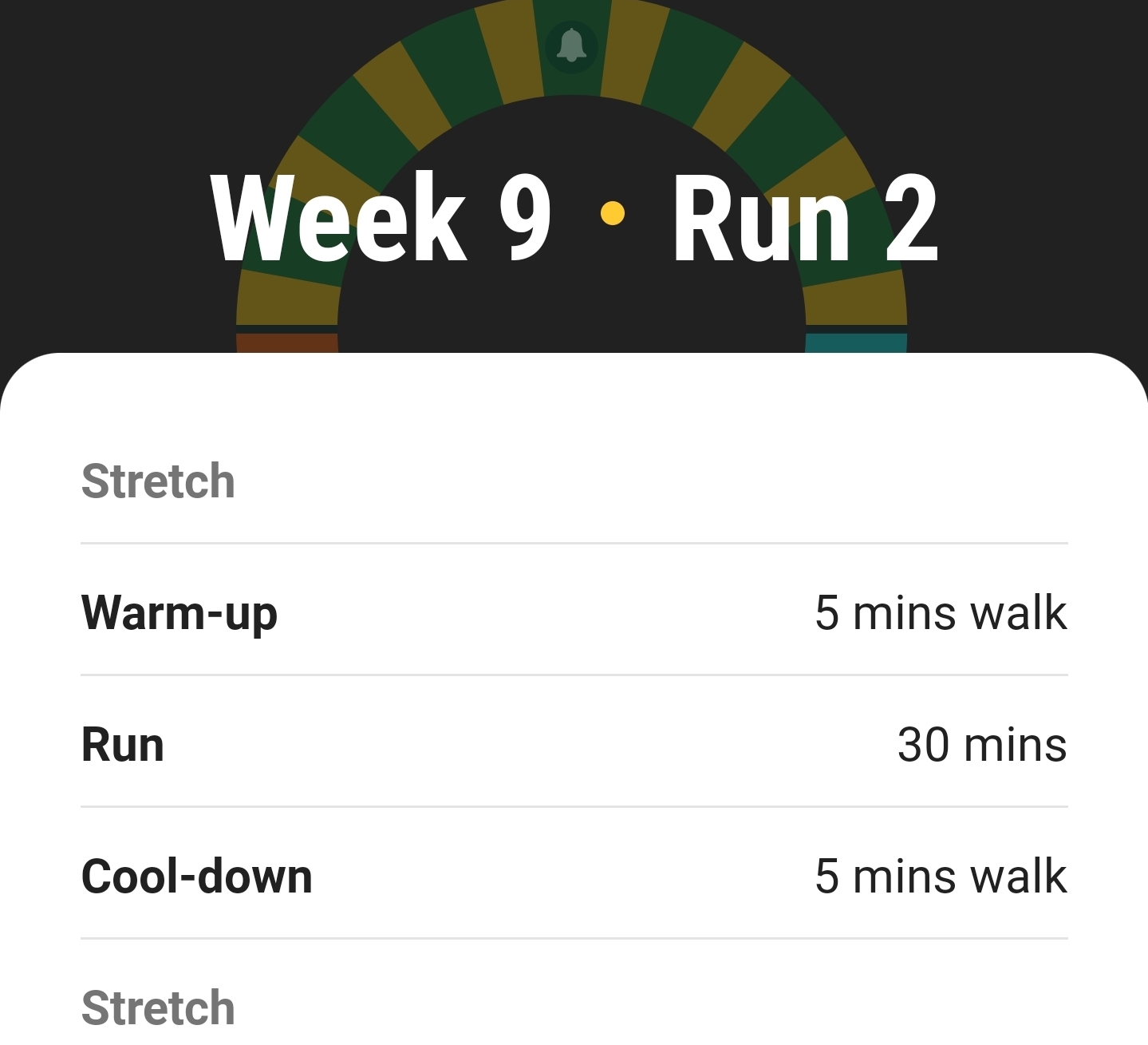 Your Couch to 5k course is 9 weeks long, running 3 days per week.
